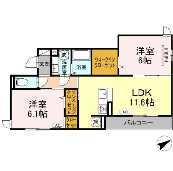 - 2LDK LDK11.6帖、洋室6.1帖、洋室6帖