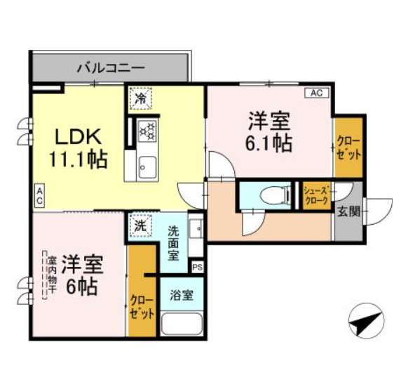 - 2LDK LDK11.1帖、洋室6.1帖、洋室6帖